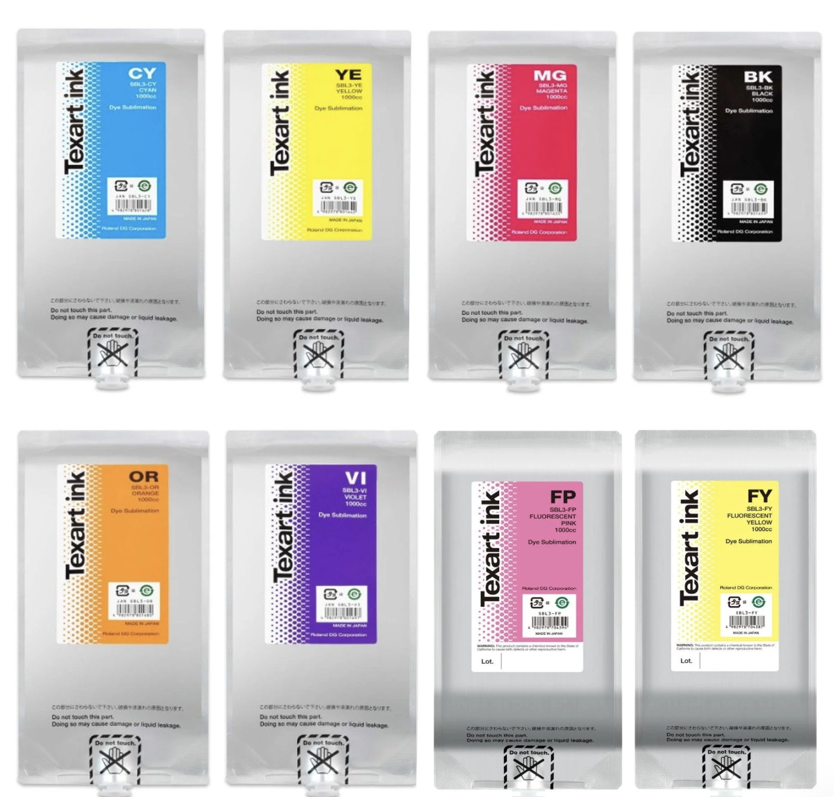 Formuladas especialmente para la impresión de sublimación con las Texart™ RT-640 o XT-640 de Roland DG, las tintas Texart™ SBL3 entregan deslumbrantes colores y gráficos de alta calidad a telas, prendas y otros artículos personalizados sublimados.